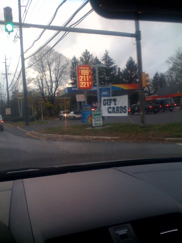 I know this is old news but I wasn’t sure how to get the photos off my iphone. I still don’t know but I did email it to myself! The price of gas has dropped even more since I took this last week. I am blown away by this. I know its not great for the economy but maybe it will get people out there traveling again. Maybe there will be a drop in airline prices, huh?